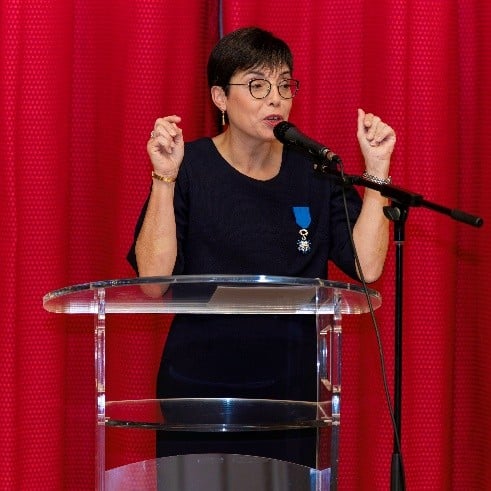 « Recevoir aujourd’hui l’insigne de l’Ordre national du Mérite, c’est pour moi une manière de dire que la maladie n’a pas arrêté ma vie – elle l’a transformée. Cette décoration, je la partage avec vous tous qui m’avez accompagnée, soutenue, inspirée et qui continuez à le faire. C’est une reconnaissance du pouvoir du lien, de la transmission et de la résilience. »