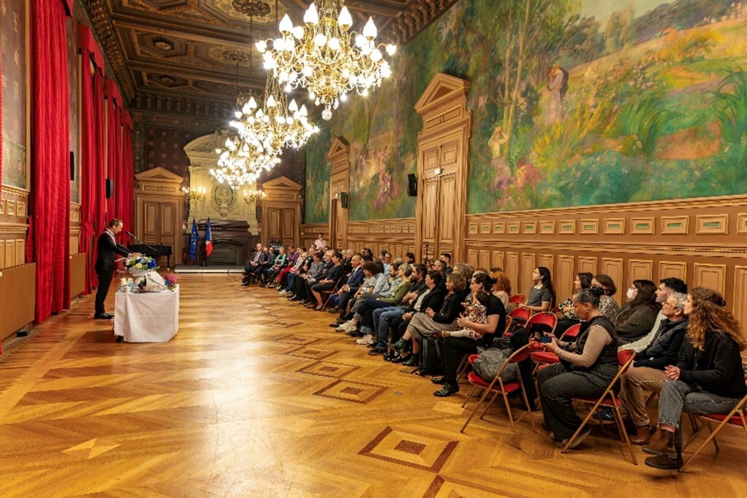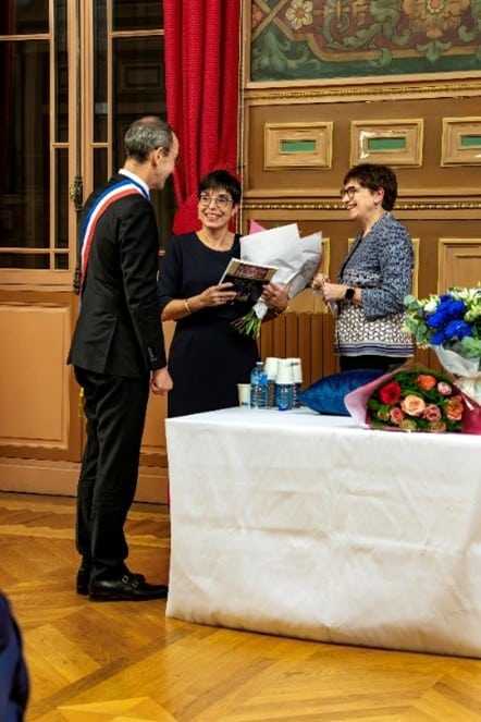La cérémonie s’est déroulée dans la magnifique salle des fêtes de la Mairie du 11e arrondissement de Paris, près du siège de l’association. Le maire, François Vauglin, qui nous faisait l’honneur de sa présence, a rappelé l’engagement d’Irène au sein de l’AFPric, aussi bien en régions que sur le plan national. L’insigne de Chevalier de l’Ordre national du Mérite a pu lui être remis par Jean-Philippe Rigaud, premier Vice-Président de l’association, donnant à ce moment une dimension encore plus symbolique. L’émotion dans la salle était palpable…